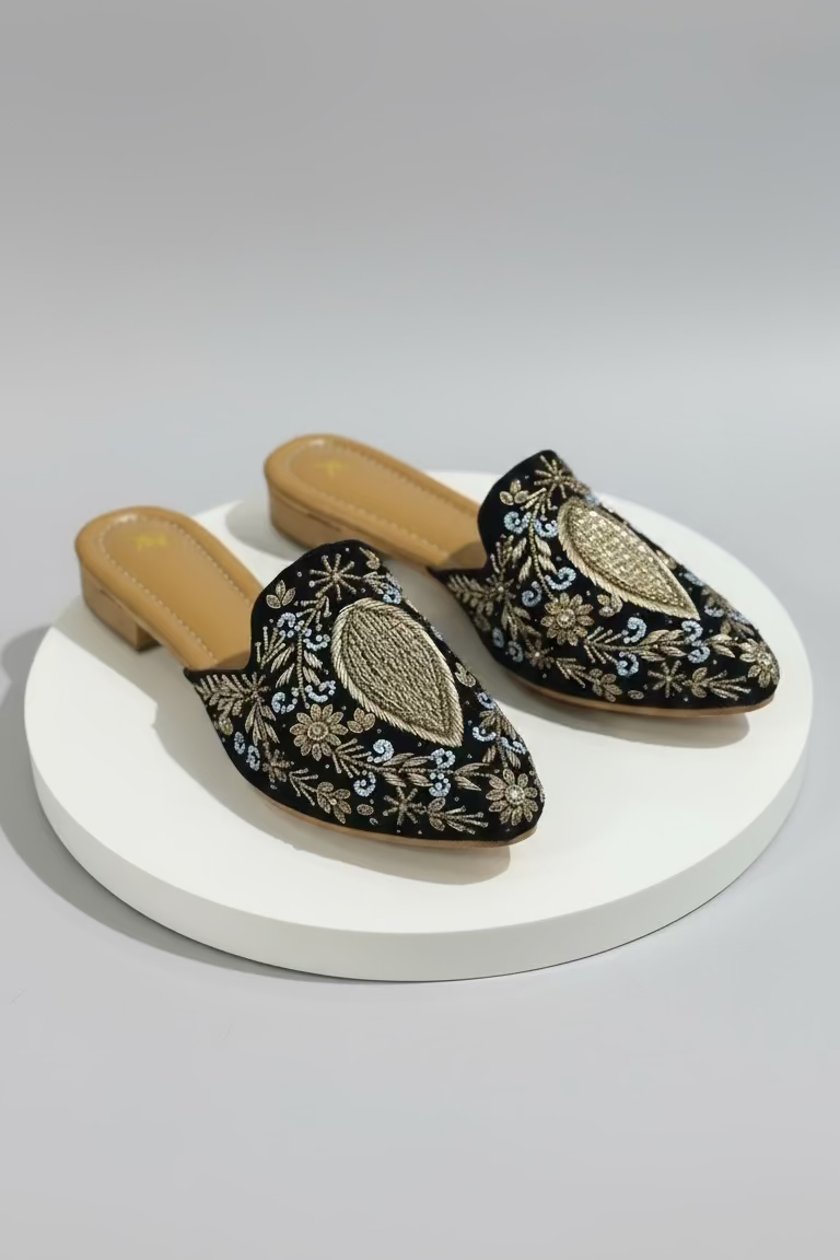 Hand-embroidered uppers crafted from soft, sustainably sourced fabrics such as cotton-silk blends, paired with pure leather linings tanned using plant-based dyes.