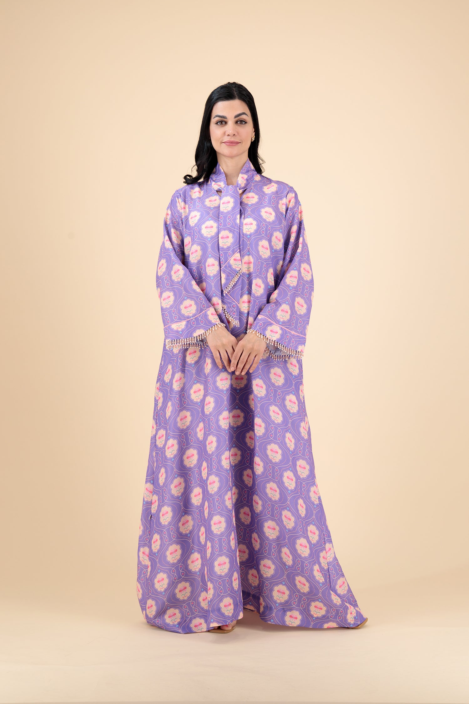 "Danat Dubai" (دانة دبي), a special design inspired by beloved Kuwaiti influencer Dana Al Shayji @danadxb. Made from soft, breathable Italian cotton, this exclusive Ombré piece celebrates the brand's exciting new Dubai location at the 30th Dubai Global Village season. Perfect for warm weather, it comes in customized sizes for women and the little girls.